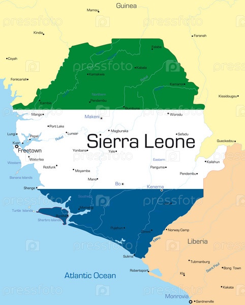 Сьерра-Леоне на географической карте в цвете национального флага