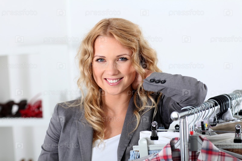 Красивая женщина в магазине одежды