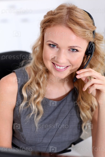 Красивая женщина с гарнитурой