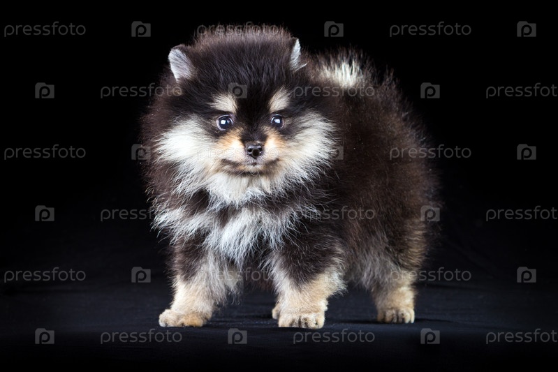 Пушистый щенок померанского шпица на черном фоне