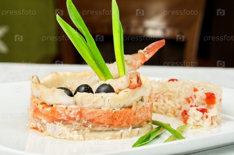 Вкусно приготовленная рыба с рисом и овощами
