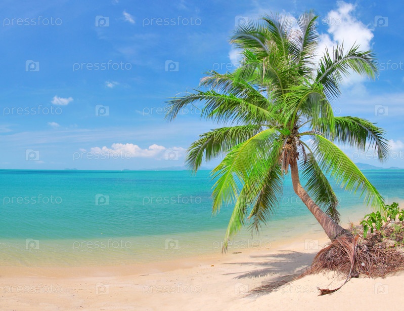 Пляж с кокосовой пальмой