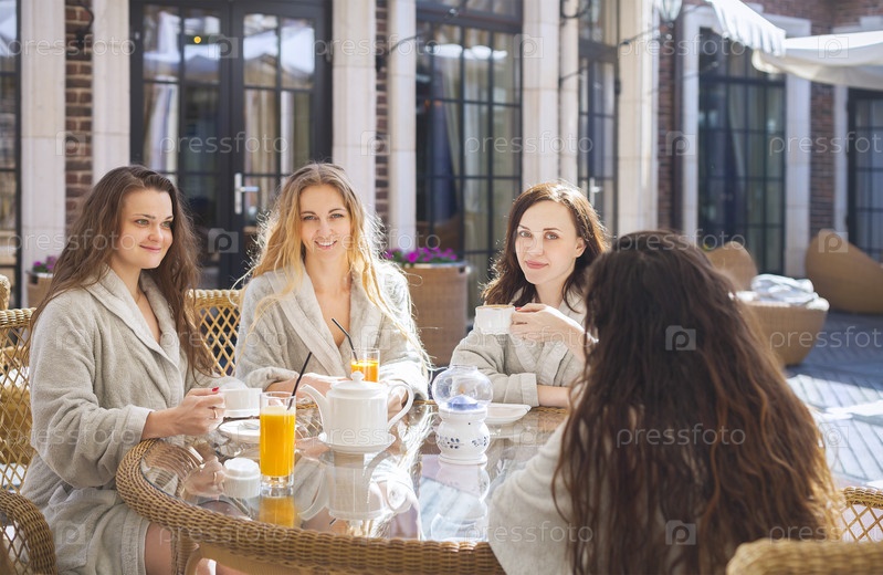 Четыре молодые женщины на спа-курорте