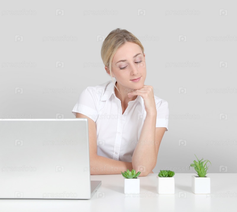 Блондинка у компьютера