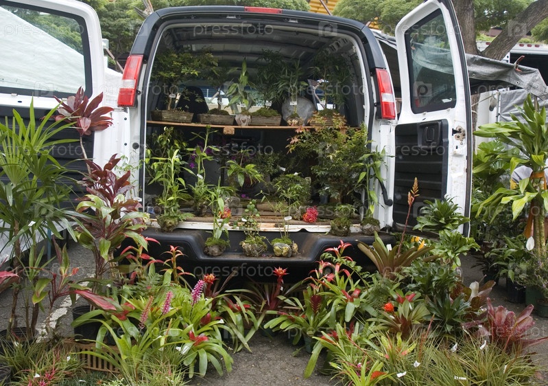 Минивен, засаженный растениями