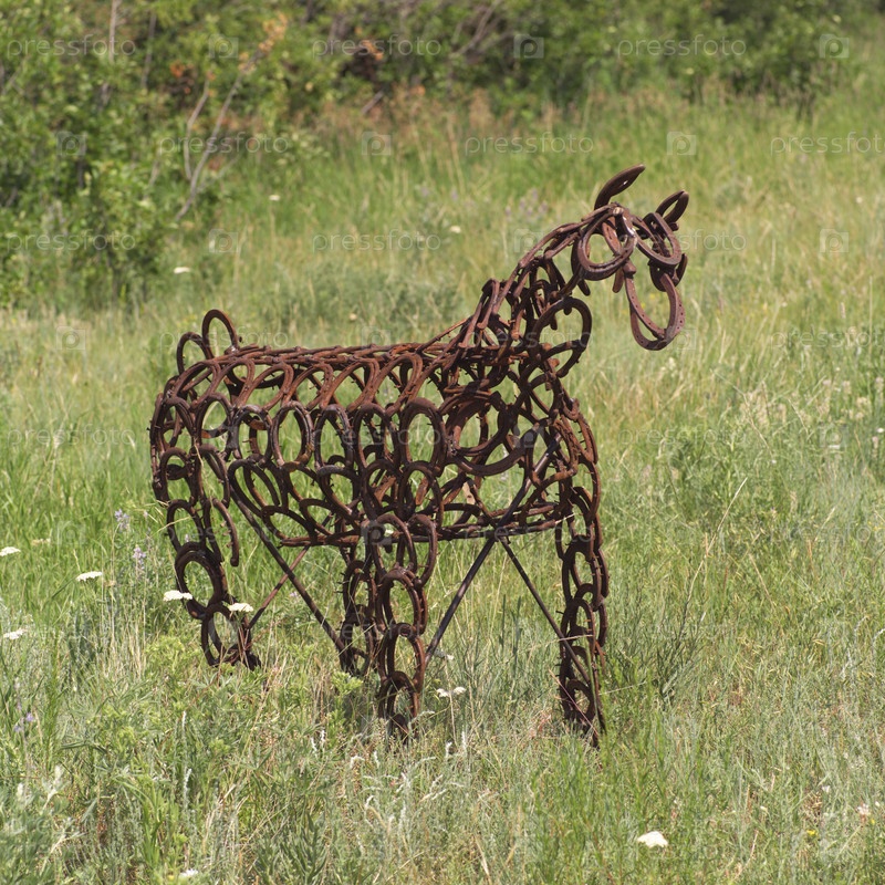 Металлическая скульптура животного в поле