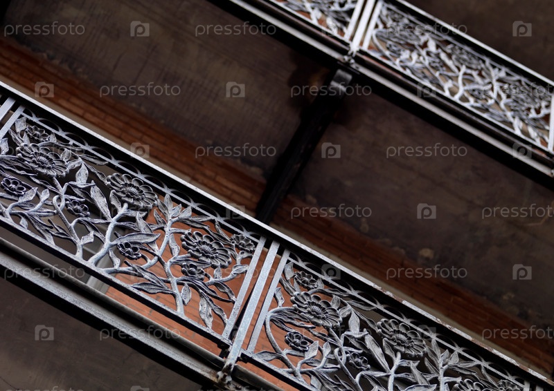 Перила из кованого железа в отеле «Челси» в Манхэттене, Нью-Йорк Сити, США