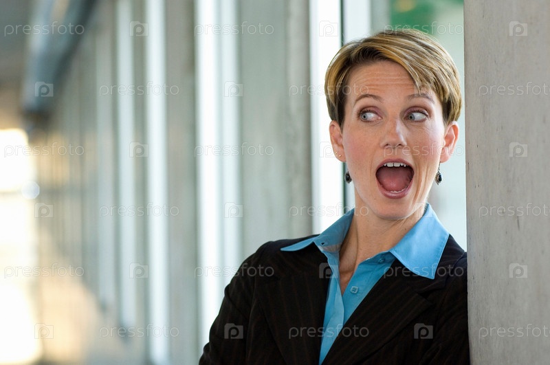 Женщины исполнительной стоя в коридоре удивлен