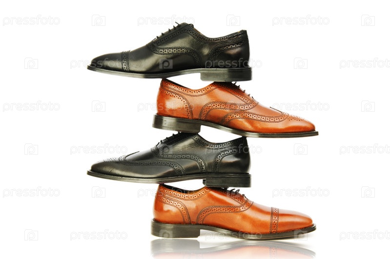 Две пары мужских кожаных туфель на белом фоне