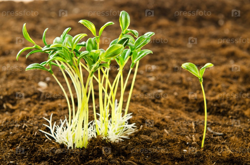 Зеленые ростки, проросшие из земли