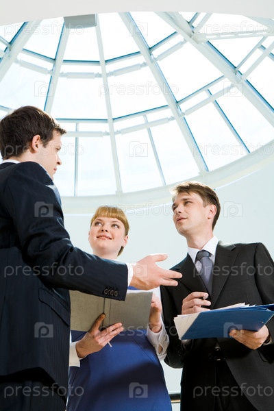 Изображение умного профессионала, объясняющего что-то своим коллегам на встрече