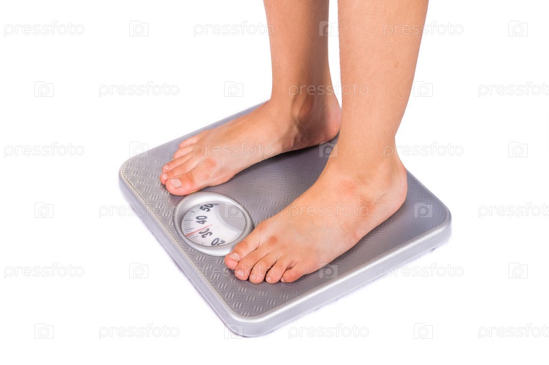 Ноги на напольных весах на белом фоне