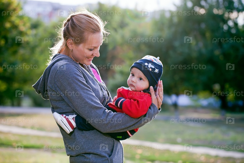 Молодая мать с маленьким сыном на прогулке