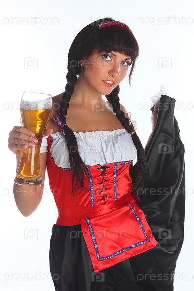 Девушка с бокалом пива на белом фоне