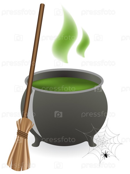 Котел с зельем и метла, иллюстрация