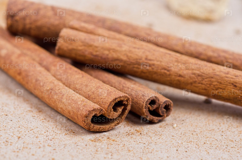 Палочки корицы крупным планом на коричневом фоне