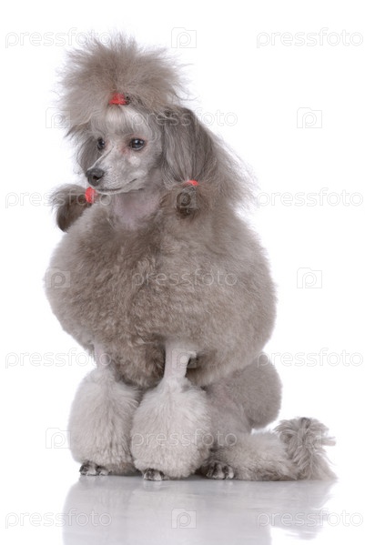 Серый пудель на белом фоне