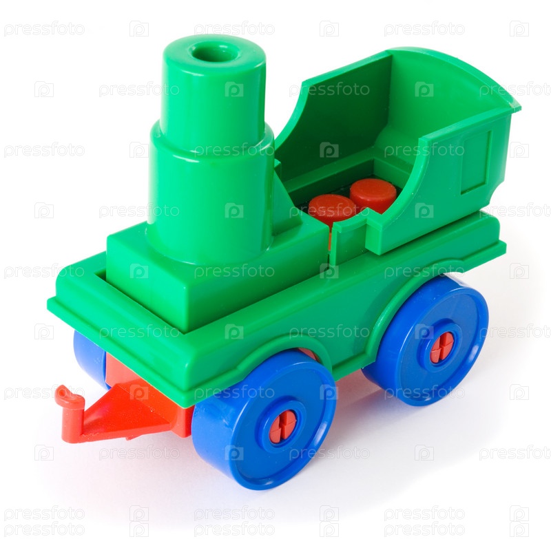 Детский сад многоцветный трейлер с игрушками на белом фоне