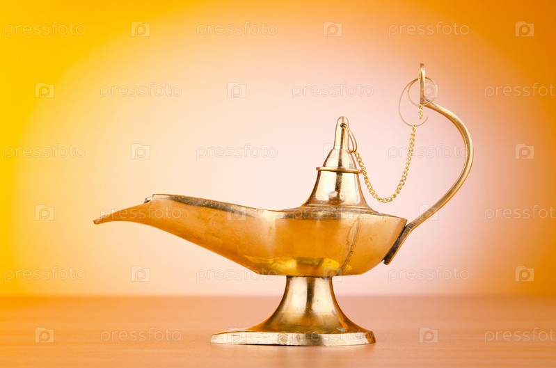Старинная восточная лампа на желтом фоне