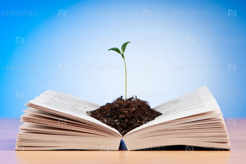 Зеленые ростки в открытой книге