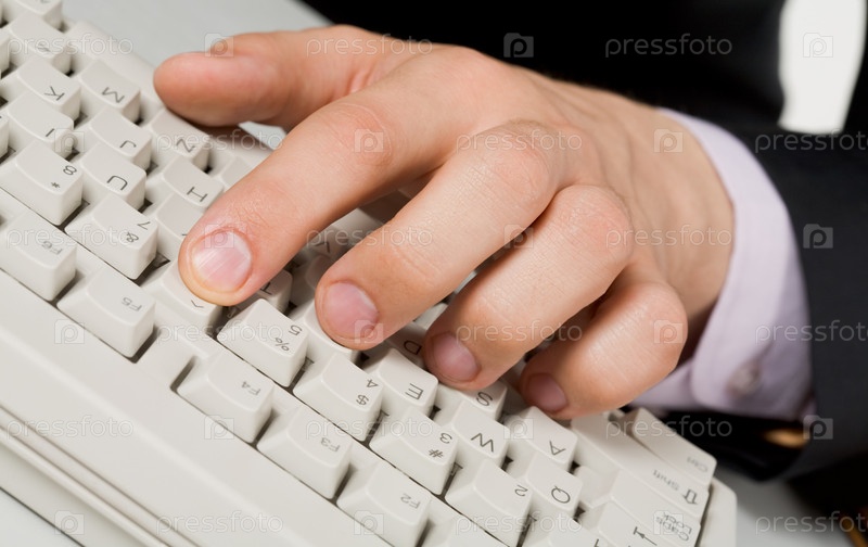 Изображение человеческих пальцев на кнопках клавиатуры во время работы с компьютером