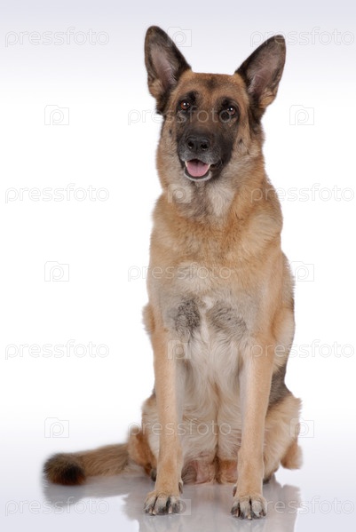 Немецкая овчарка на светлом фоне