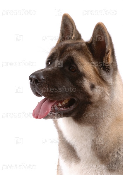 Американская акита на белом фоне