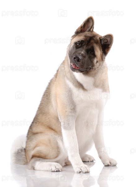 Американская акита сидит на белом фоне