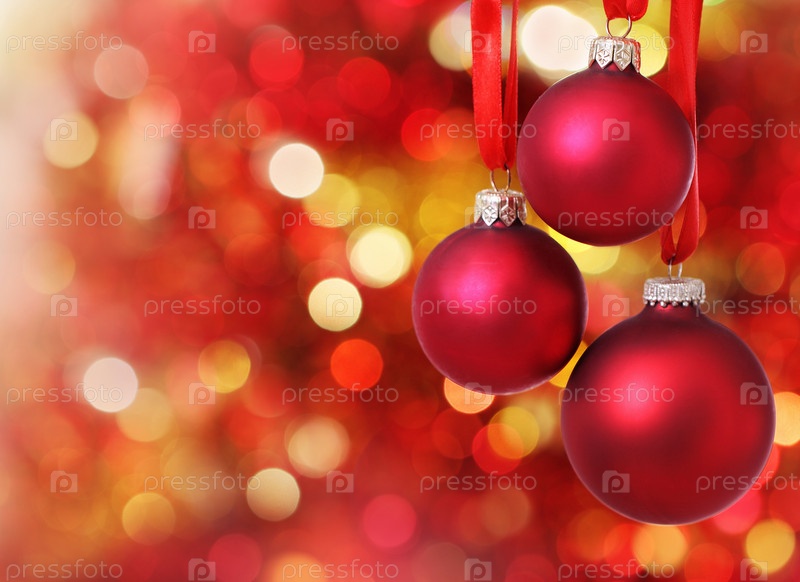 Красные елочные шары на фоне огней