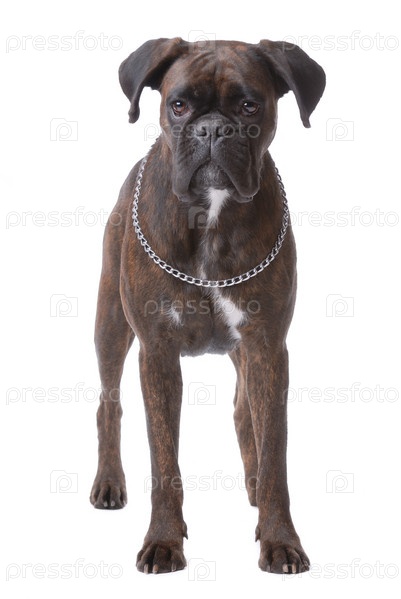 Собака боксер на белом фоне