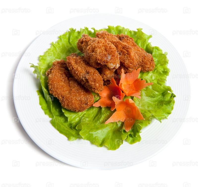 Панированные куриные крылышки на тарелке