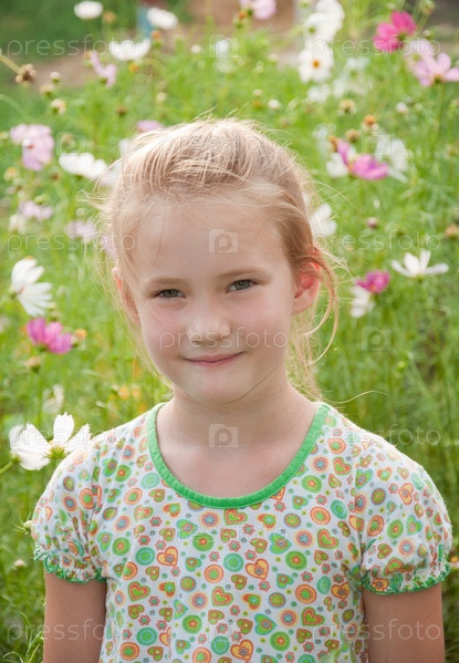 Портрет девочки на фоне цветущего луга