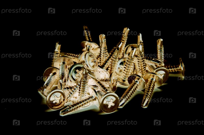 Винты, куча, черный, золотой, изолированные, отрицательные, многие