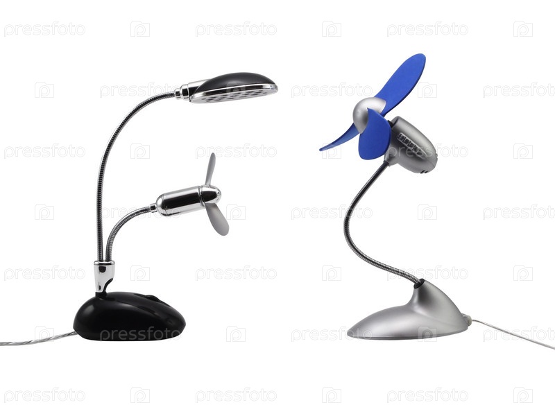 Два настольных вентилятора на белом фоне