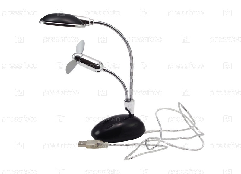 Настольная лампа-вентилятор на белом фоне