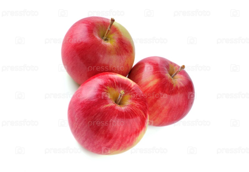 Три красных яблока на белом фоне