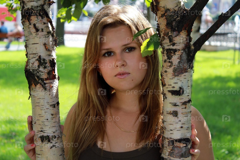 Портрет красивой девушки возле берез