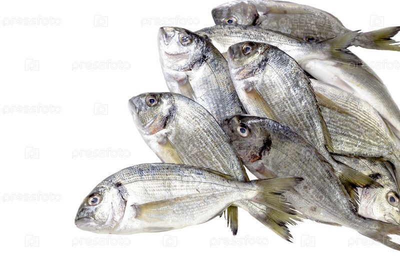 Морской лещ (Sparus aurata) на белом фоне