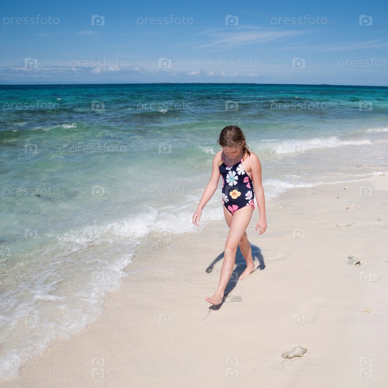 Девушка идет по пляжу