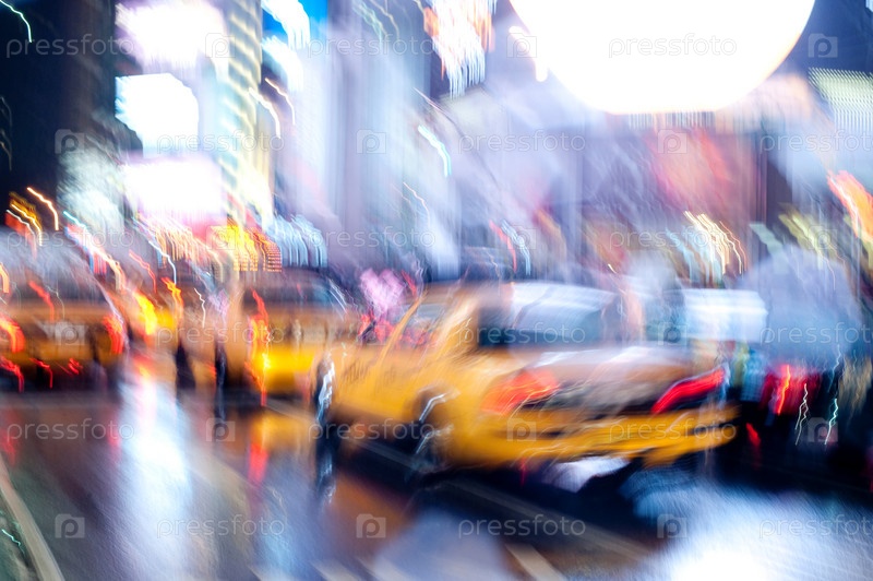 Желтые такси на улице в Манхэттене, Нью-Йорк, США