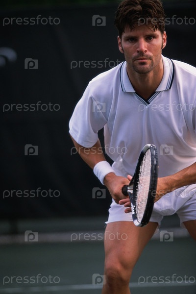 Портрет человека, играя в теннис