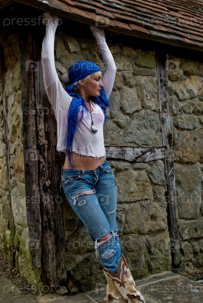 Женщина у каменной стены