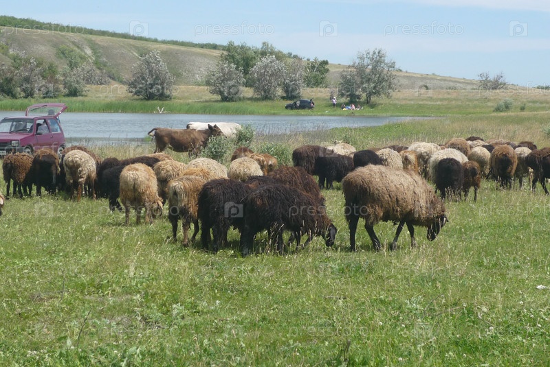 Стадо овец на пастбище