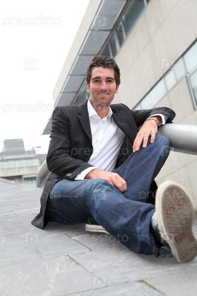 Бизнесмен сидя в лестницы в городе