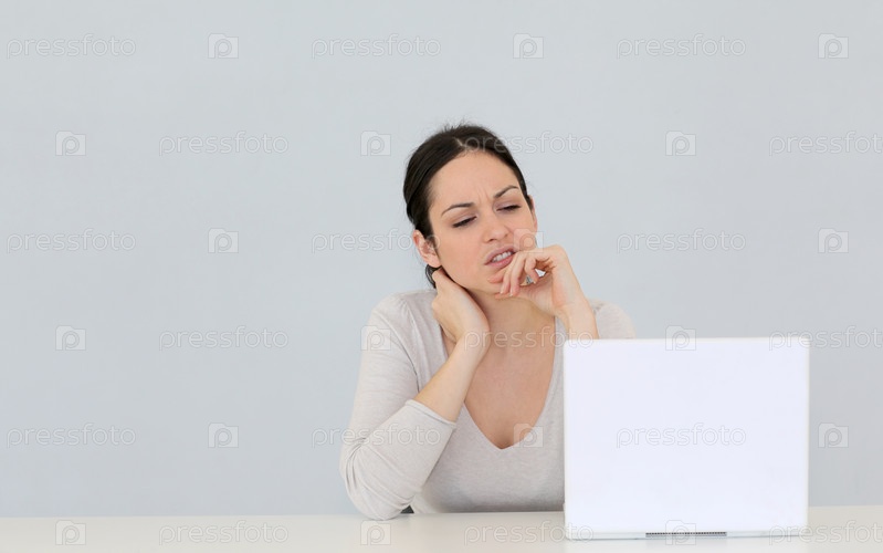 Молодая женщина перед ноутбук