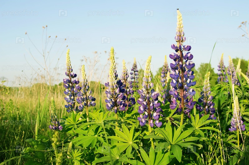 Сиреневые люпины на лугу
