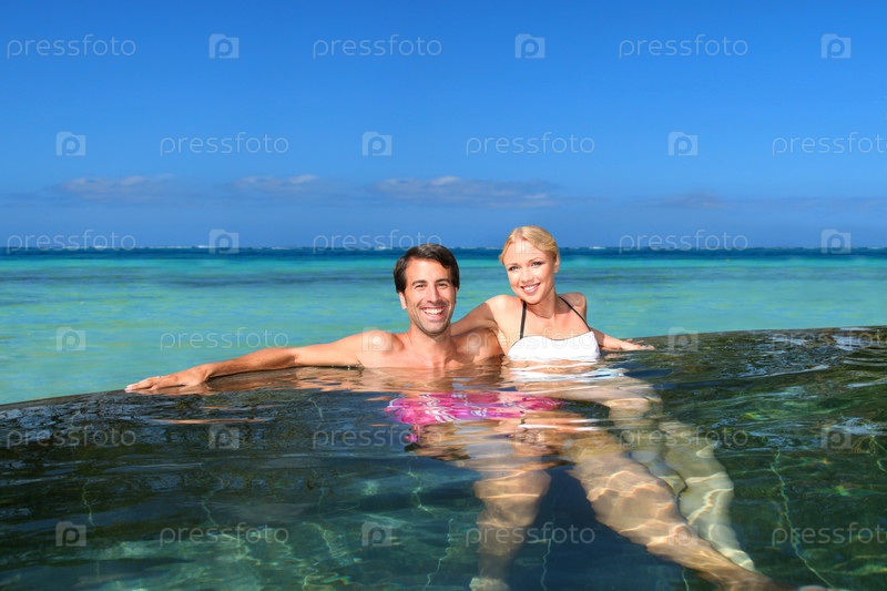 Веселая пара расслабляющий в бассейн