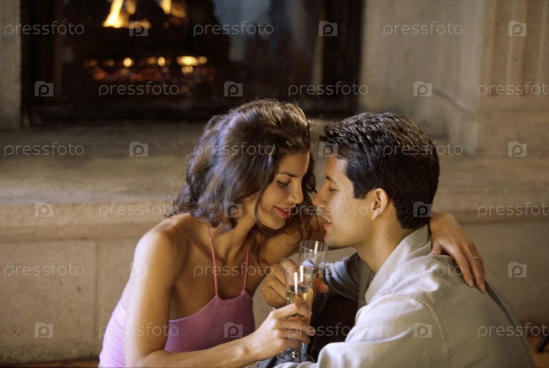 Профиль молодой пары у камина