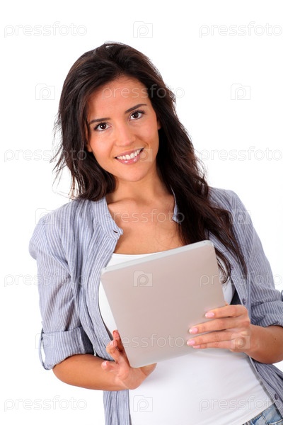 Молодая женщина с цифровым планшетом
