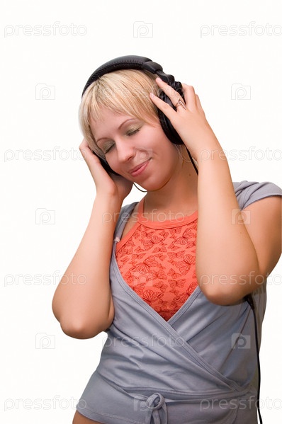 Молодая девушка слушает музыку в наушниках